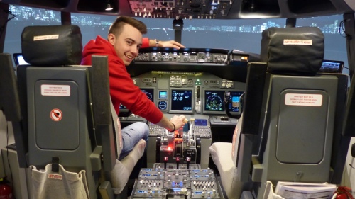 Ich finde es toll, dass ich heute geflogen bin! Ich liebe alles, was mit Technik zu tun hat, und der Flugsimulator hat was mit Technik zu tun, weil man da Knöpfe drückt und es sich so anfühlt, als ob man in echt fliegen würde! Einfach super!